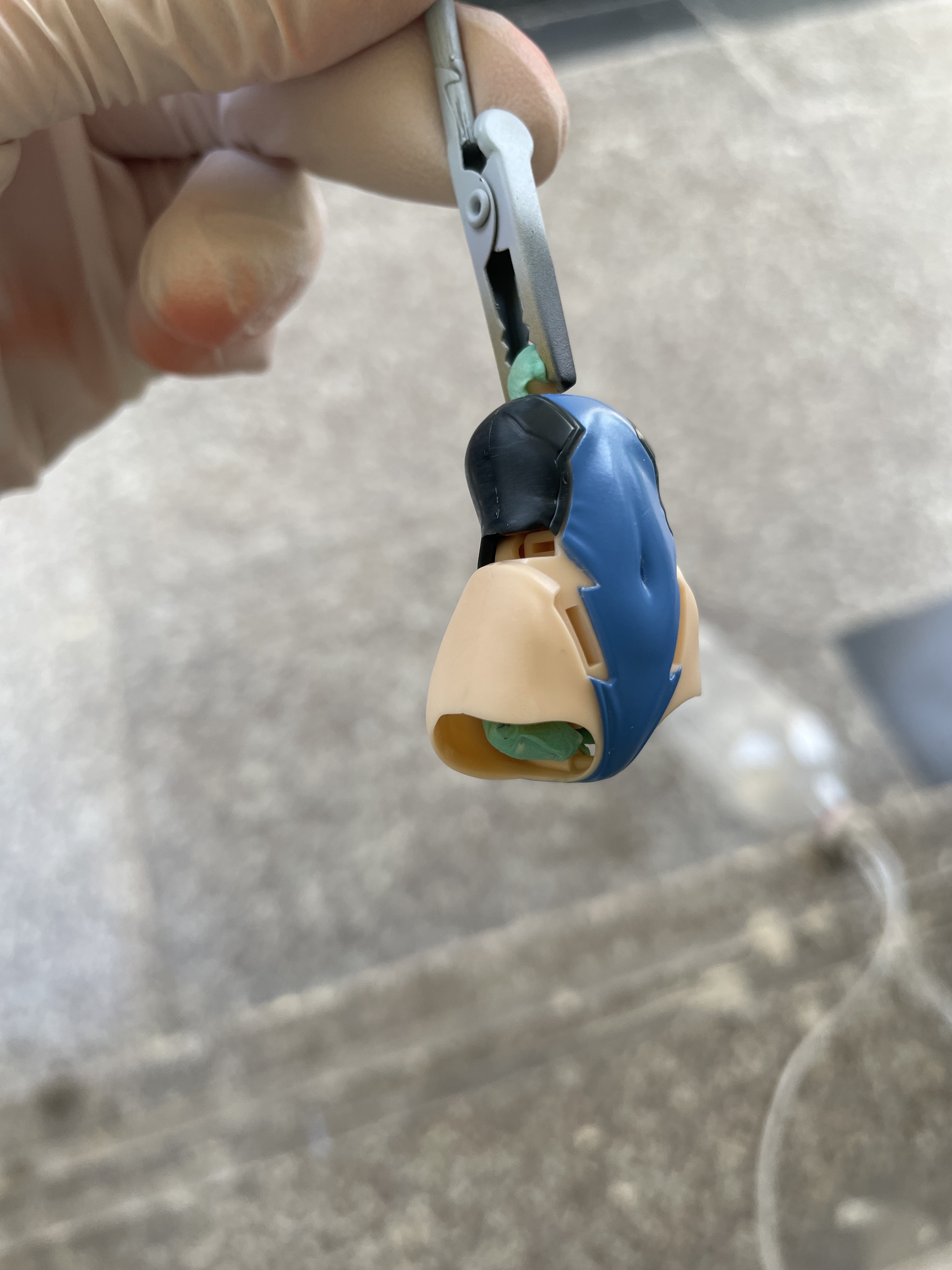 - 用海绵砂纸把原先的脸部移印磨掉(注意磨干净,没磨干净一是可能厚度不一致,二是涂装时不好遮盖)